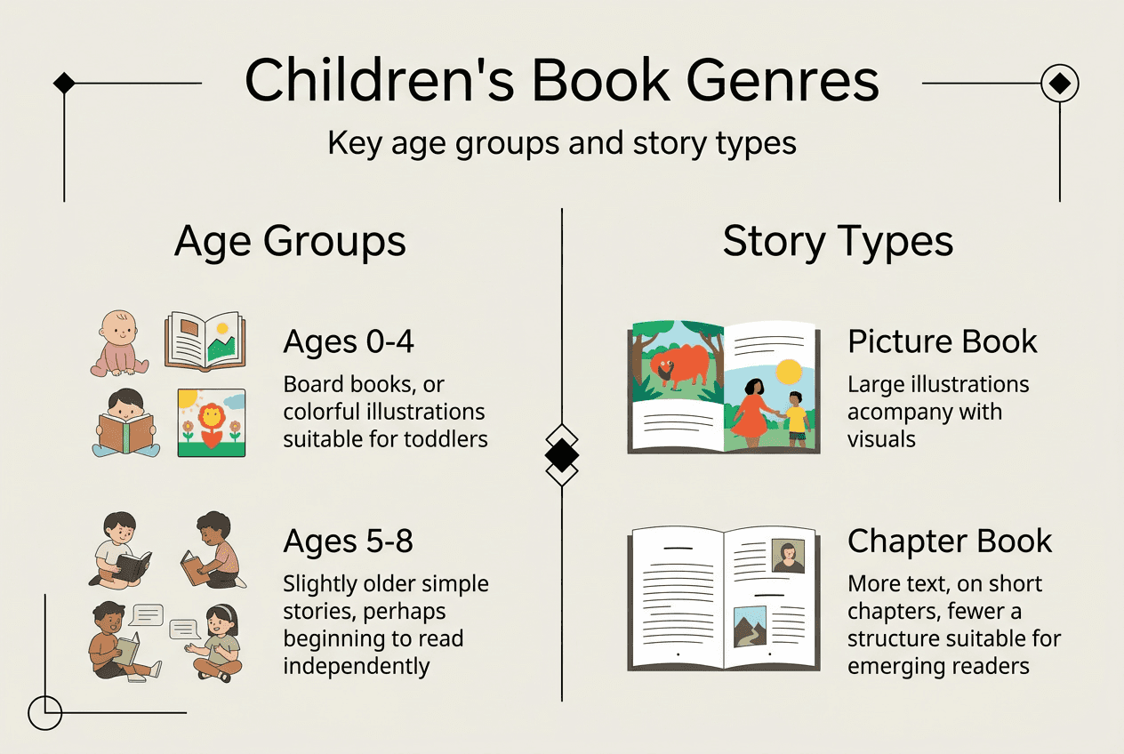 Picture books include sub-genres like fairy tales, alphabet books, and bedtime stories, unlike the broader genre classifications in adult literature. Exploring types of picture books for kids literacy reveals how each sub-genre serves specific developmental and educational purposes. Selecting your target age group guides every creative decision, from vocabulary complexity to thematic depth and manuscript length.